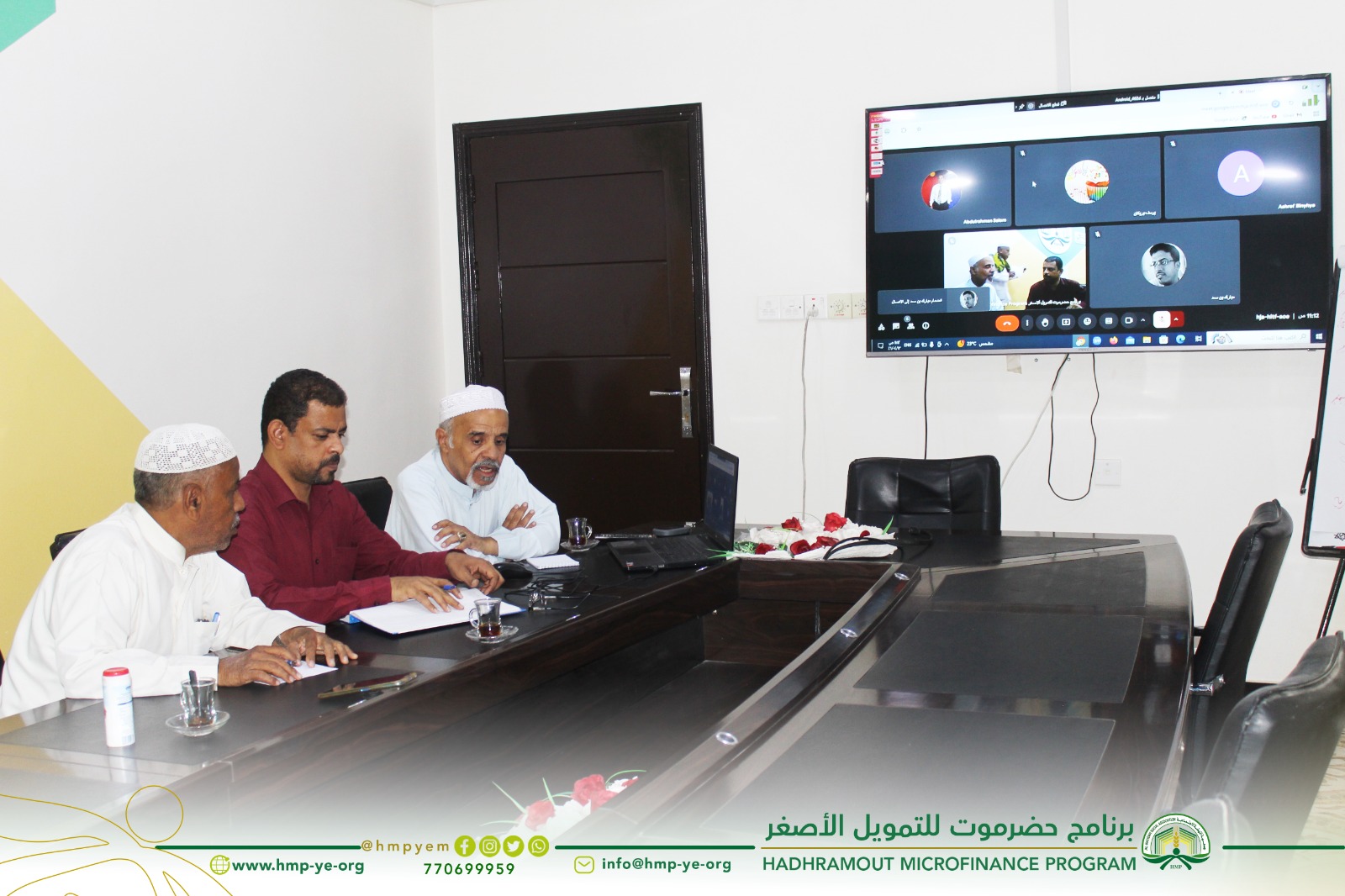 برنامج حضرموت يعقد اجتماع عبر (قوقل ميت) مع رؤساء الدوائر التنفيذية ومدراء الفروع بالبرنامج